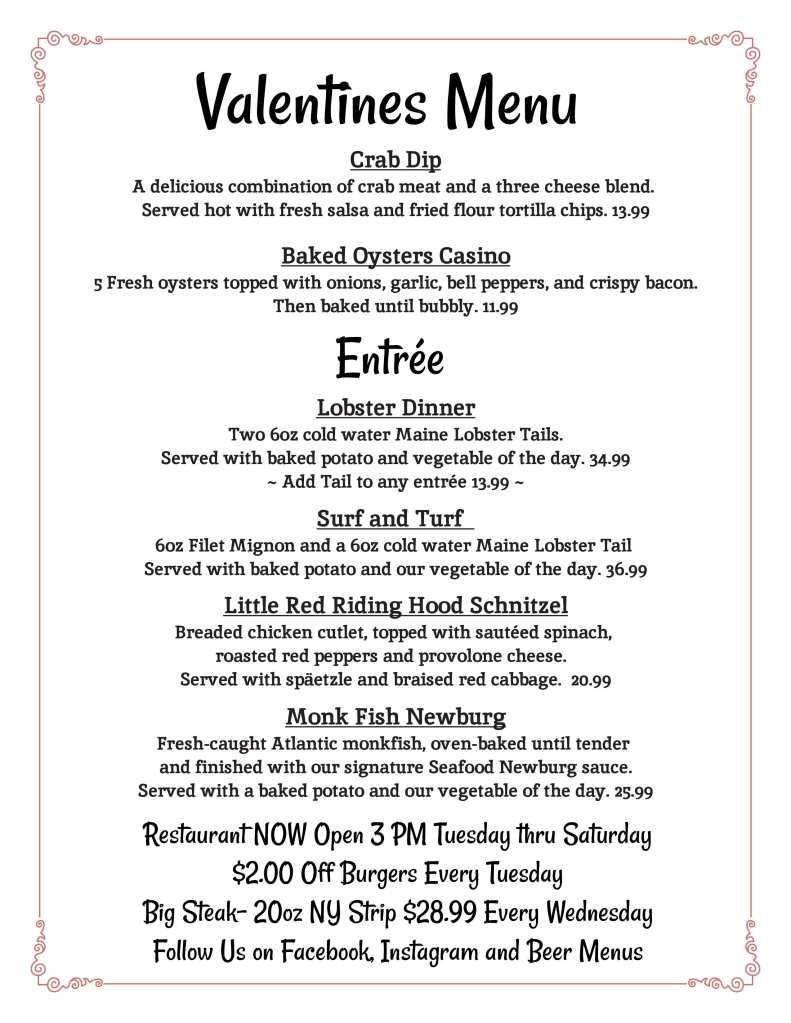 Our Valentine’s Day Menu will only run from Wednesday February 11th to 14th.
